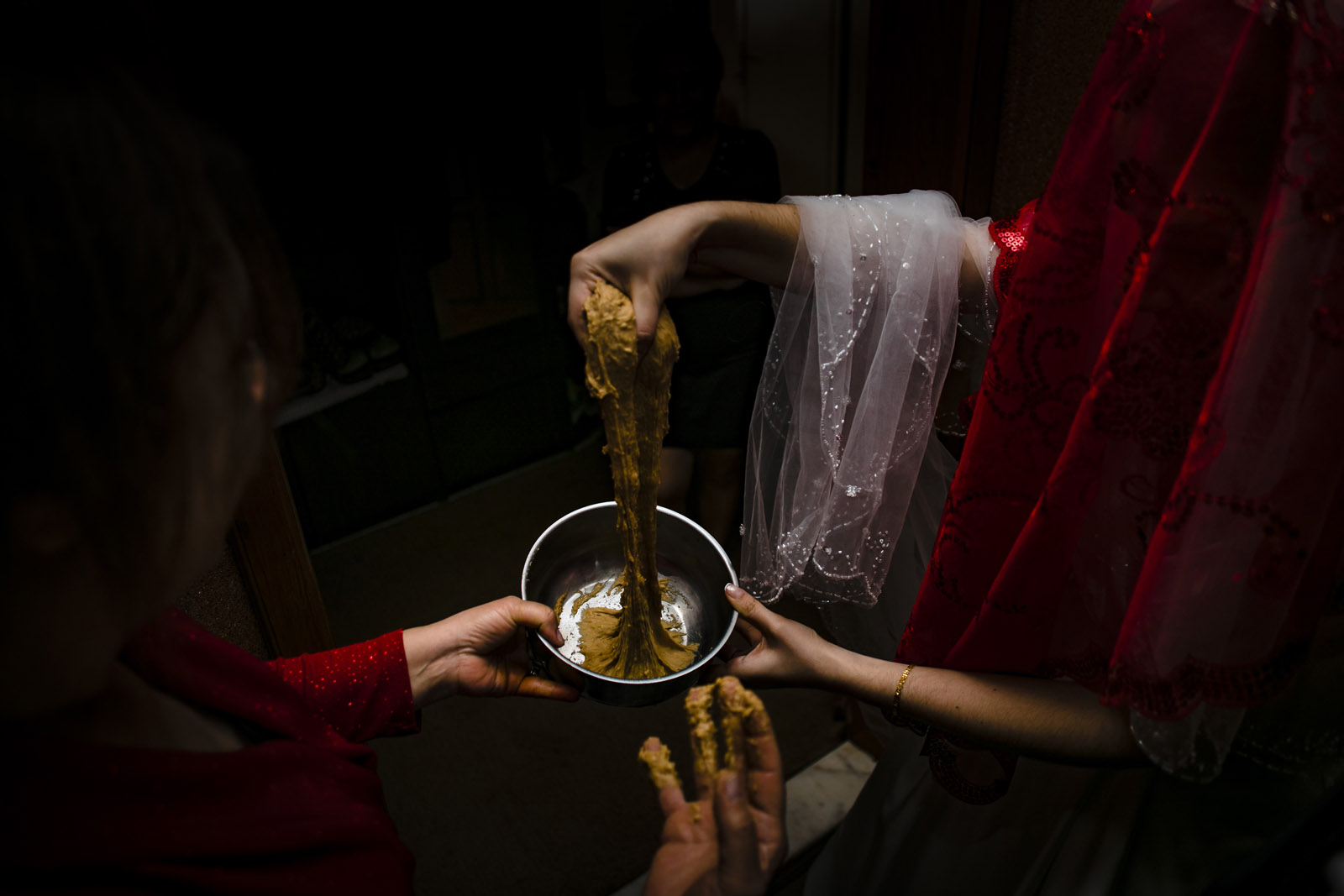 Irmak’ın annesi iyi bir fotoğrafçı. Irmak ve Özden İstanbul’da yaşadıkları için düğün fotoğrafçısını ayarlamak da biraz ona kalmış. Düğün fotoğrafçısı için önce onun, sonra çiftin onayı gerekiyordu, neyse ki bu aşamaları geçebildim 🙂 Adana düğünleri de Çukurova adetlerinin yoğun olduğu düğünler oluyor genelde. Bu da bir belgesel düğün fotoğrafçısı için daha fazla fotoğraf şansı demek. Pekmezli hamur damat evinin kapısının üstüne gelin tarafından yapıştırılıyor, ağız tadları hiç bozulmasın diye. Düğün müziğini ise Özden’in amcasına emanetti ve çok eğlenceliydi.
